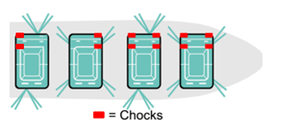 *) Hold 1, Deck 4-6 (incl. main deck): 4 + 4 lashings and 4 wedges.